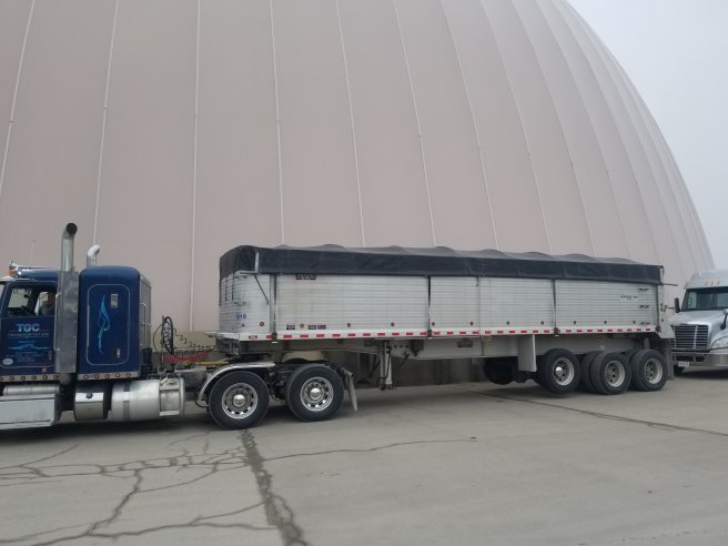 I literally had to manipulate the tarp on a loaded dump trailer very much like a flat bed operator still covers freight. There were no supporting metal “bows” the load was covered by a large one peice canvas that was fitted to the trailer. Rubber straps held it in place and the only fixed point was on the center front of trailer. This method, of cover, is dirty and labor intensive. Climbing and throwing the tarp had its fall risks. The major trick was folding and rolling up the tarp properly to fit in a basket designed to hold it when not in use. I’m glad I was young and more agile when I worked this method.