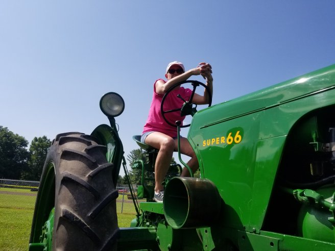 I became actively involved in Franklin’s celebration during the 2015 parade. Since then, I’ve traveled the parade route on / in a antique vehicle. Generally I’m on a tractor, but last year I drove Big Red. A hot loud old truck isnt a great choice, but a lady friend I was seeing at the time wanted to be in the parade. I should have spent more time teaching her how to operate a tractor.