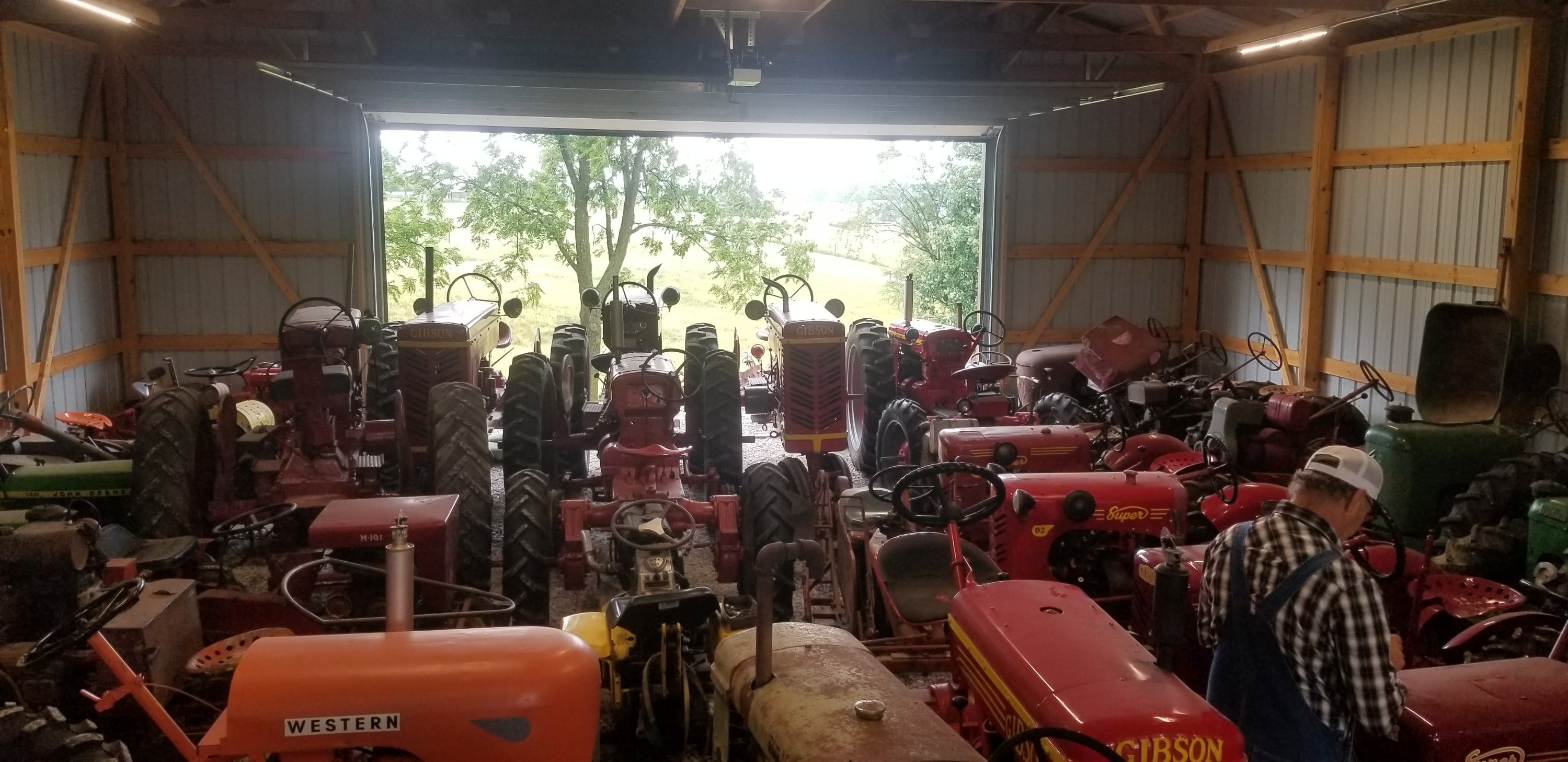 Digger and I viewed the collection in the most challenging method, stored away in the barn. It wasn’t easy to get good pictures. Our viewing was A lot of fun that way though! Carl does host an open house in the fall. If you would rather not climb and peruete amongst the tractors, that may be a better method of viewing them.