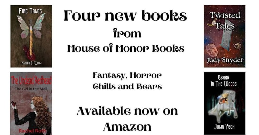 Our lady authors Rachel Roth, Keisha Willi, Julia Yeoh and Judith Snyder all have books recently released. The books are available from Amazon. Links can be discovered on the website http://www.houseofhonor.com.