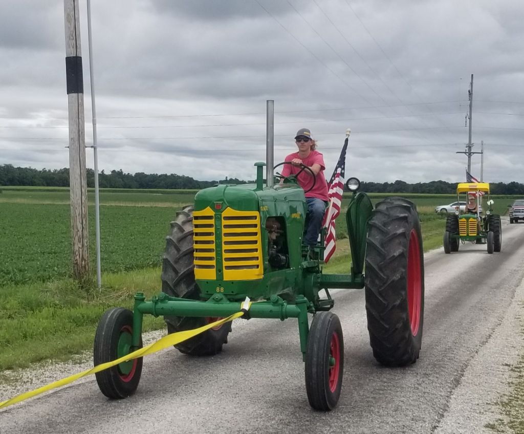 28 tractors traveled the parade route before the drivers embarked on their exploration of the countryside. Jim Edwards led the caravan through the journey to Nortonville and the final destination at the Adkins farm.