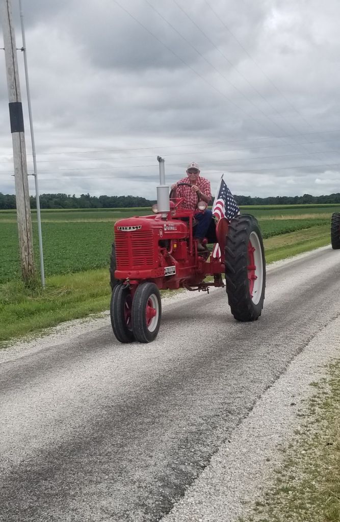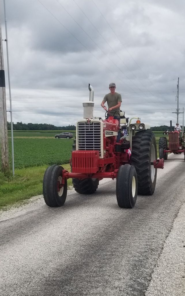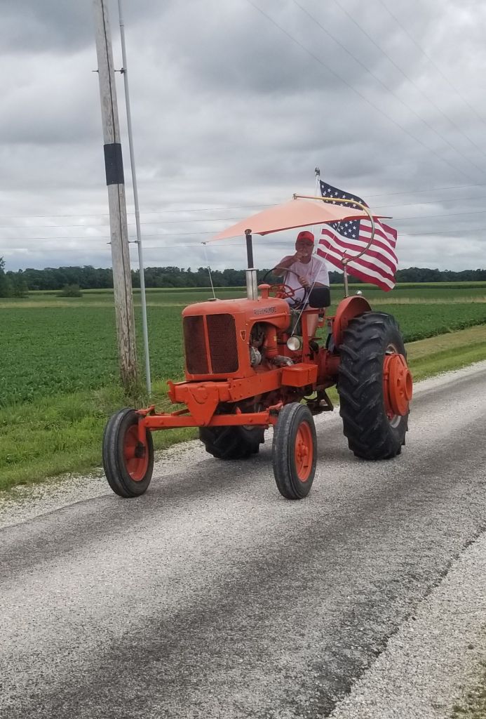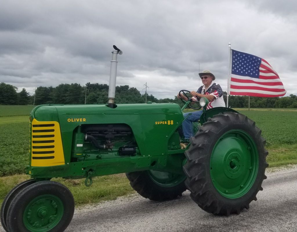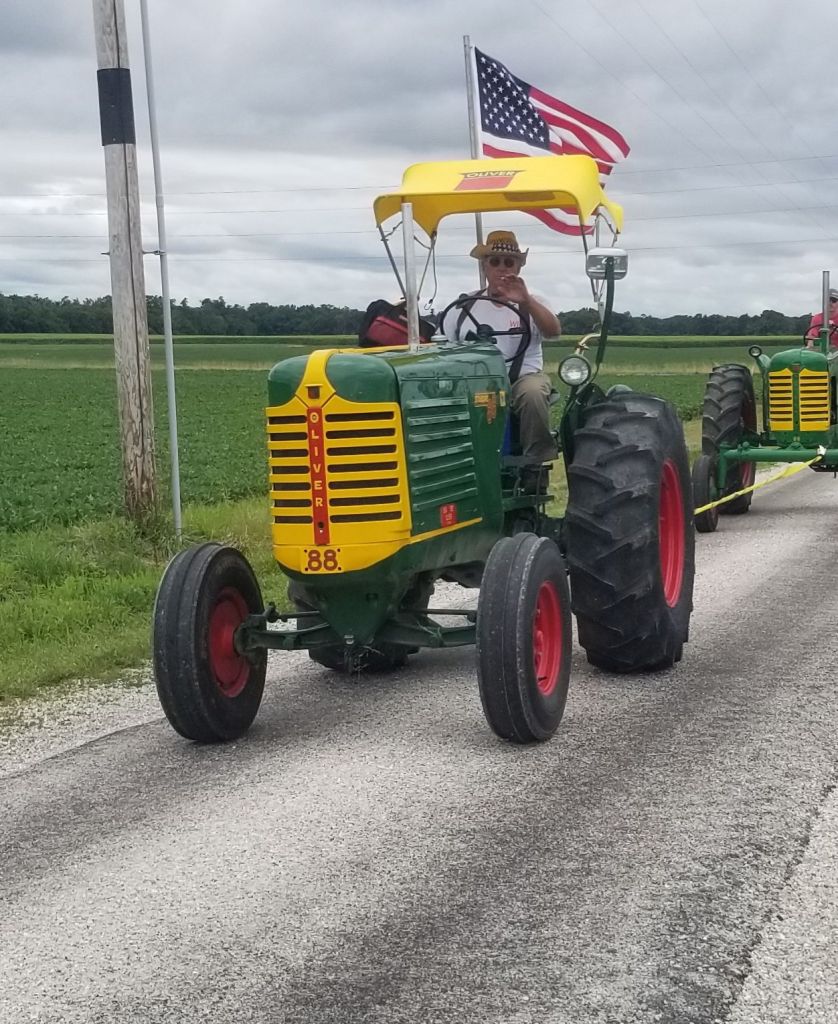 2024 celebrated the fifth tractor drive and cookout hosted by Josh Adkins and Doug Edwards. The morning weather was rainy, causing concern about participation. Sunshine finally made an appearance. Even after a delay, the Franklin parade stepped off slightly late.