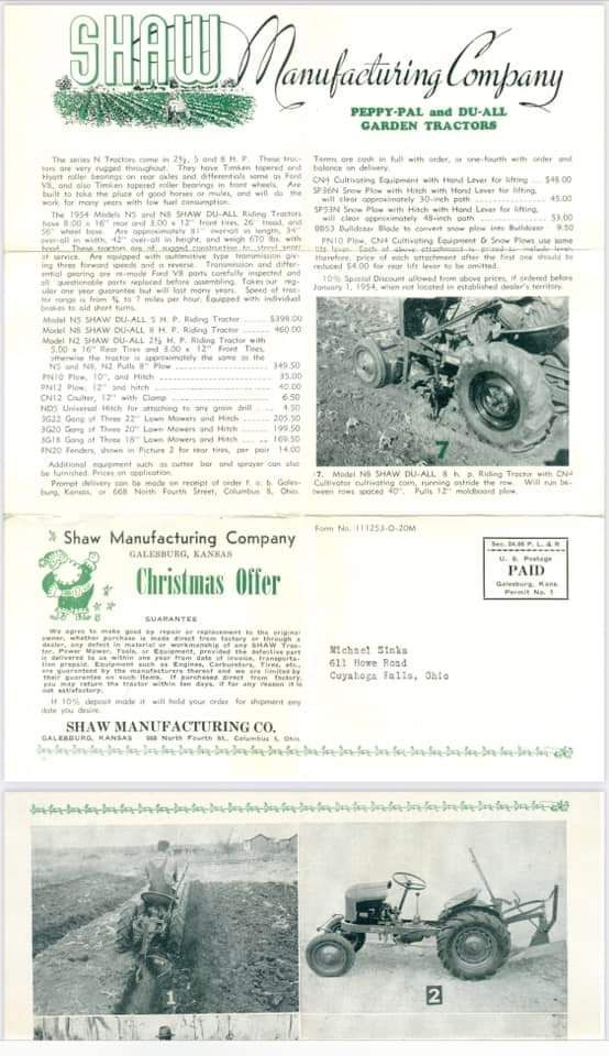 The most frustrating thing about research is that information gets lost to history. In the case of Shaw Manufacturing, some but not all material is gone concerning the N model tractors. I’m a member of a Shaw Du-all group on Facebook, The information we share is a tremendous help.