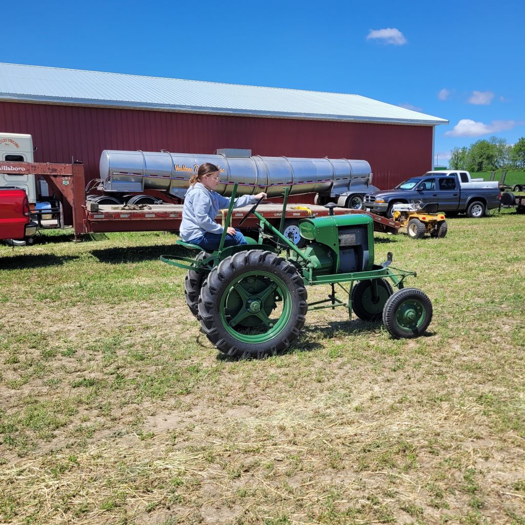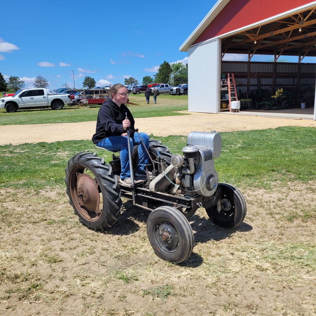 I enjoy seeing tractors simply just driving around. That’s a great way to view machinery, running, and in action. For the past two years, I have recruited Leigha and Laci Kersten to exercise a couple of mine during the show. Evan Speicher and Danny Davis took a spin.