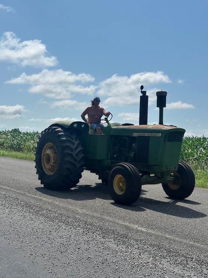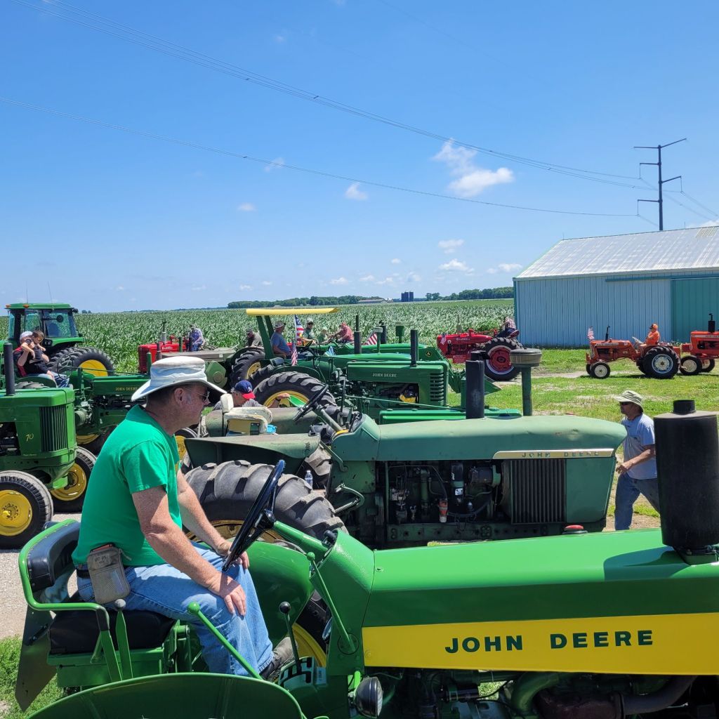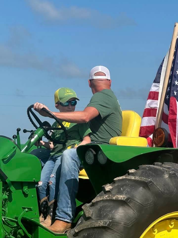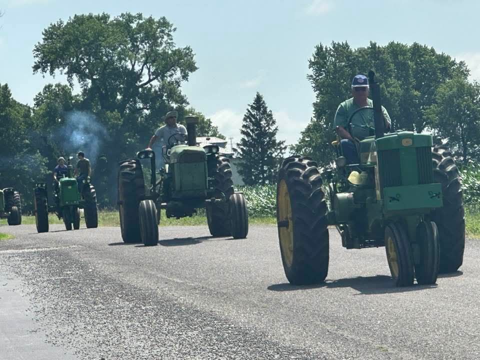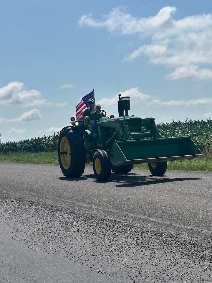 Despite the recent loss, the annual drive is also a celebration of family. More than tractor drivers were participating. The day was a Ladage reunion. Family came from across the state, and as far as TX.. The patriarch Roger Ladage was oldest, and Brody Ladage was youngest.