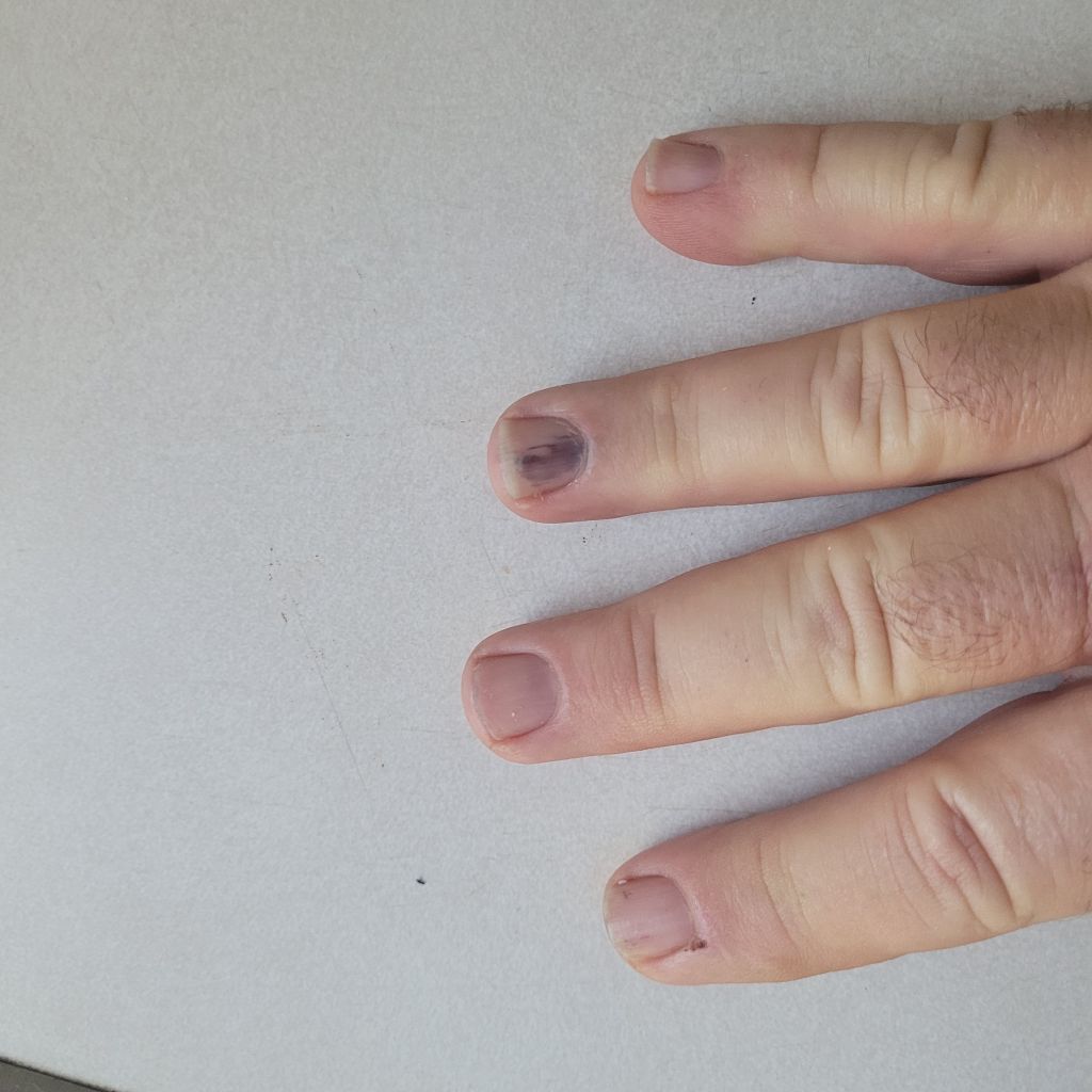 I was changing back tires on a Cub Cadet 102. That should be quick and painless. It went well, but not exactly painless. My help lowered the jack to quickly and I had a finger in the wrong place.